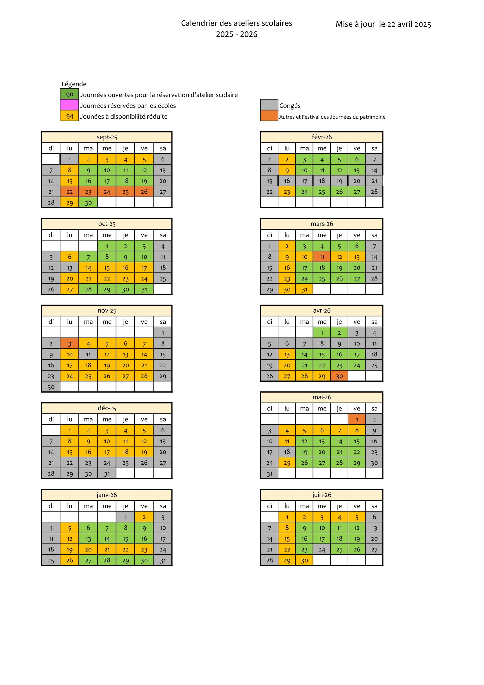 CALENDRIER DES DISPONIBILITÉS 2025-2026
